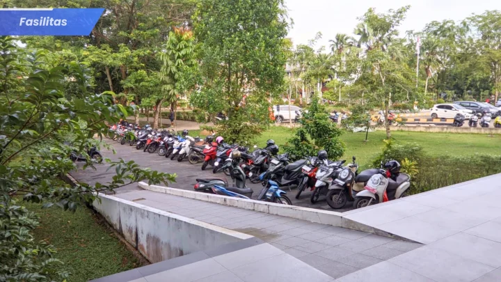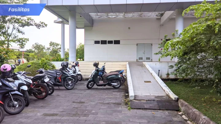 Perpustakaan menyediakan area parkir yang luas dan tertata rapi untuk kendaraan roda dua maupun roda empat. Fasilitas ini memastikan setiap pengunjung dapat memarkirkan kendaraannya dengan aman dan nyaman. Lokasi parkir juga dekat dengan pintu masuk gedung, memudahkan akses bagi semua pemustaka.