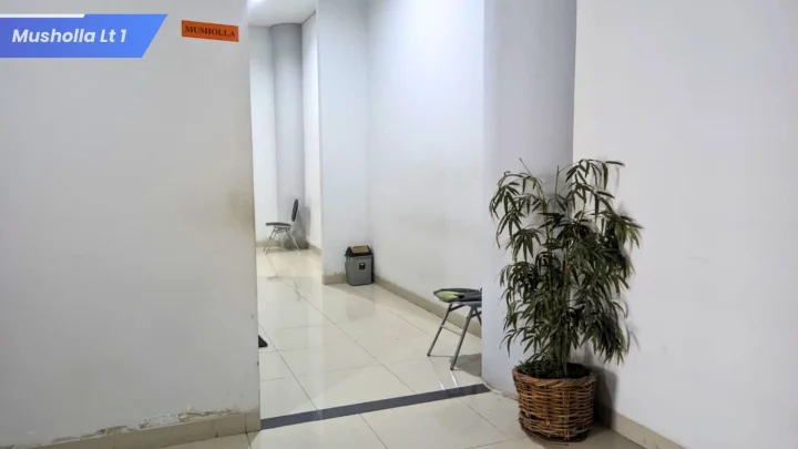 Di lantai 1 tersedia mushola yang nyaman untuk menunjang kebutuhan ibadah. Mushola ini dilengkapi dengan dua ruang terpisah, masing-masing diperuntukkan bagi jamaah laki-laki dan perempuan, sehingga memberikan kenyamanan serta kemudahan bagi seluruh pengguna perpustakaan.